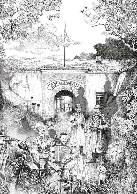 Mon illustration évoque aujourd’hui un moment de silence et de répit : le fort s’efface peu à peu dans la paix des ombres, quand le soir enveloppe les pierres et que la mémoire du lieu semble respirer, apaisée.