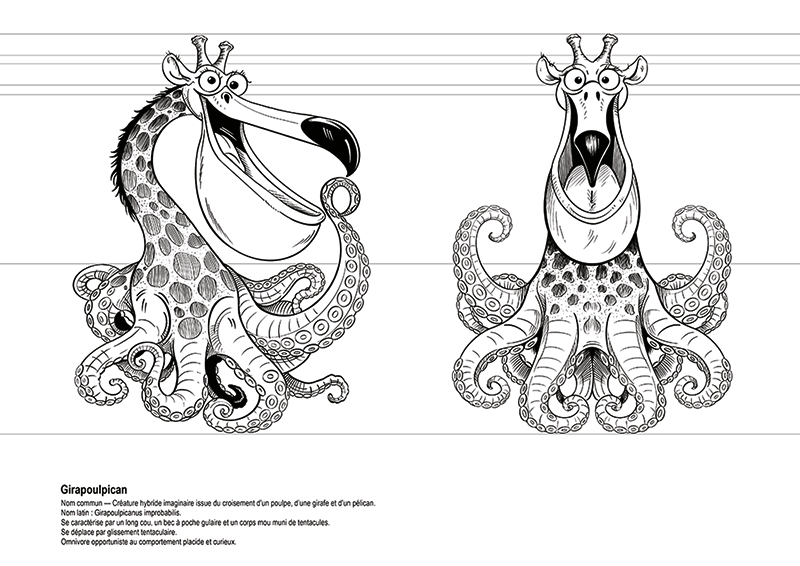 Nom commun — Créature hybride imaginaire issue du croisement d’un poulpe, d’une girafe et d’un pélican.
